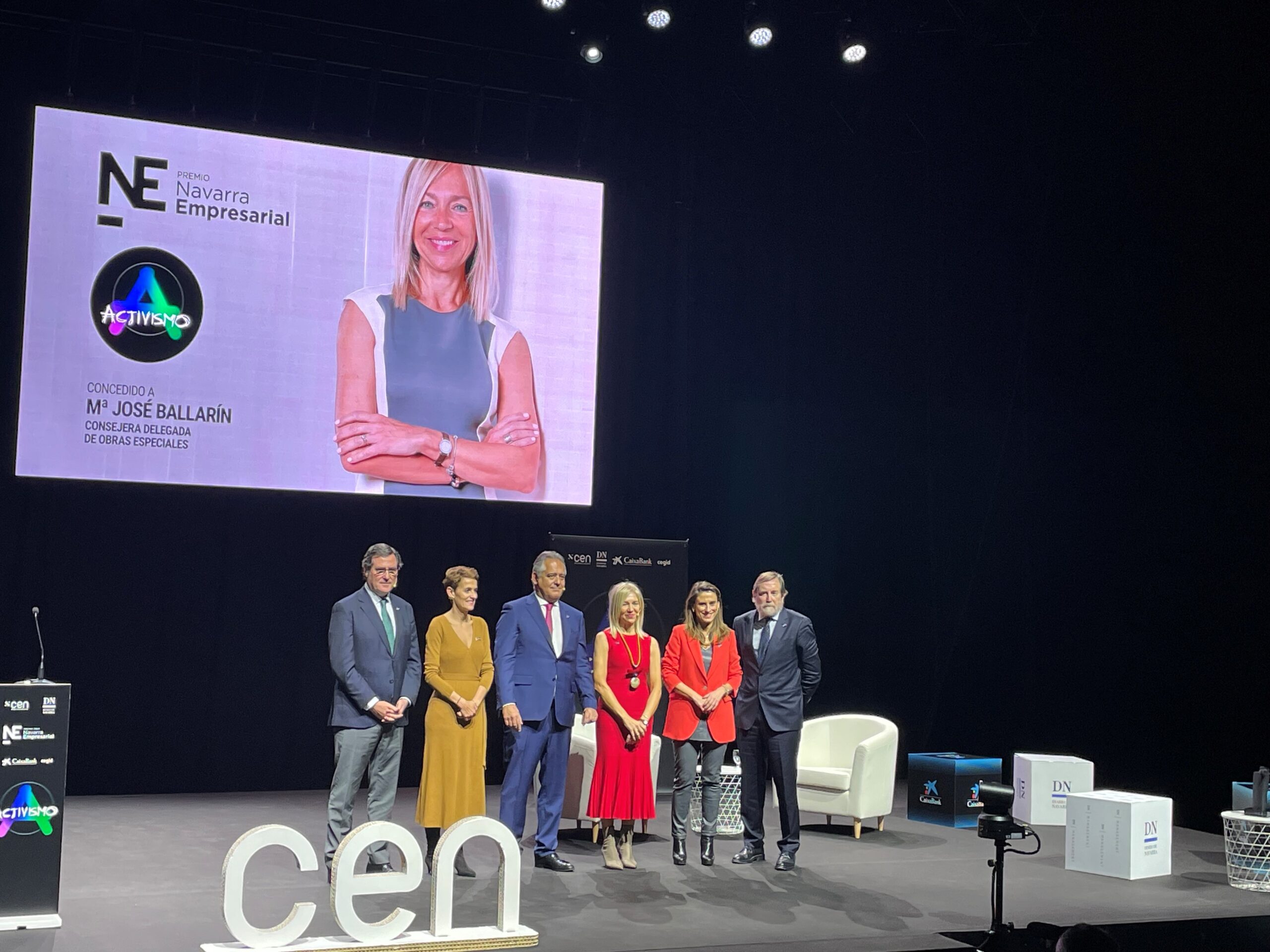 María José Ballarín, consejera delegada de Obras Especiales, ha recogido el Premio Navarra Empresarial 2024 y se ha convertido en la tercera galardonada con este reconocimiento en un acto centrado en el activismo empresarial al que han asistido más de 600 personas del ámbito empresarial e institucional, entre ellos más de 200 jóvenes estudiantes.